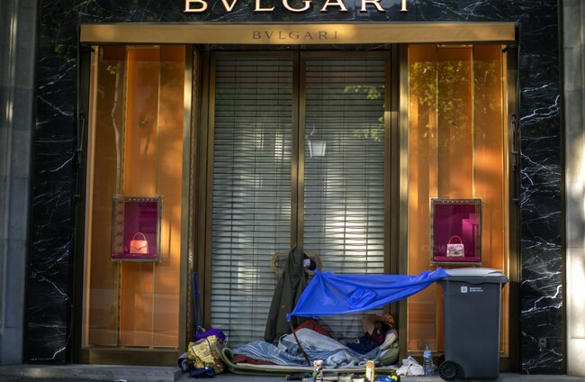 A man rests at the gate of a luxury shop in downtown Barcelona Emilio Morenatti/PA Images