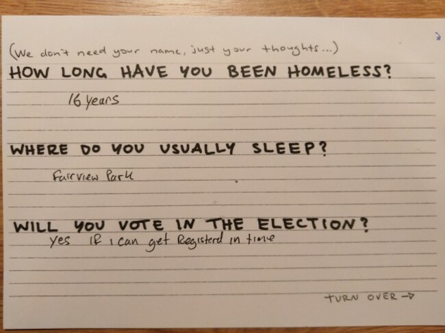 One person said they were voting for a particular politician because they believed they were strong on human rights and would stand up for the homeless.