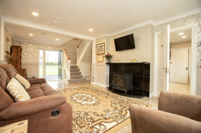 This spacious dormer-style home is set on a .6 acre site and is in turnkey condition. A cosy home, it has oil-fired central heating and PVC double-glazed windows. It has a B3 energy rating, ensuring efficiency as well as warmth. Outside, there is a tarmac driveway and manicured lawns, a mature garden and a large garage. The ground floor includes a bright sitting room, kitchen with dining space, sunroom, utility room, guest toilet and two large bedrooms.
