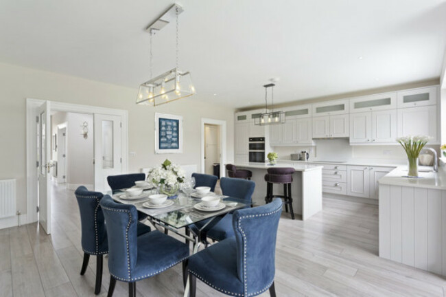 As you might expect, there is plenty of space inside. The ground floor offers two main reception rooms: a living and dining room, and a separate lounge. To the rear is a large and welcoming kitchen, with another table for family meals.