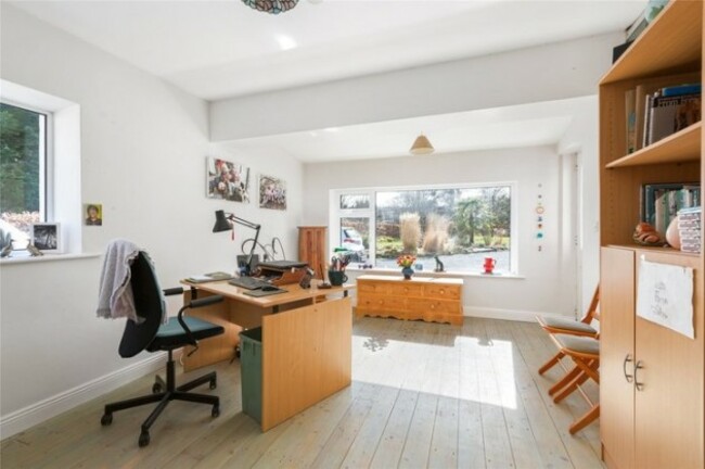 Along with utility spaces, the home office/fourth bedroom completes the ground floor, with its own entrance to the front of the house. Upstairs are three further bedrooms and a family bathroom.