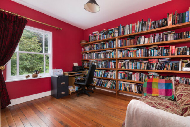 The study at the rear of the house offers a view of the mature landscaped garden. Upstairs are four bedrooms, one en-suite, and a family bathroom.