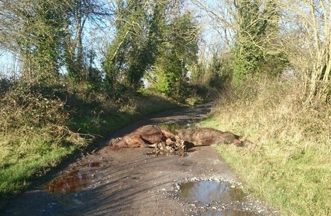 The Offaly SPCA was called to the scene by a local woman who discovered their mutilated bodies at the end of her driveway while driving her children to school on Thursday morning.