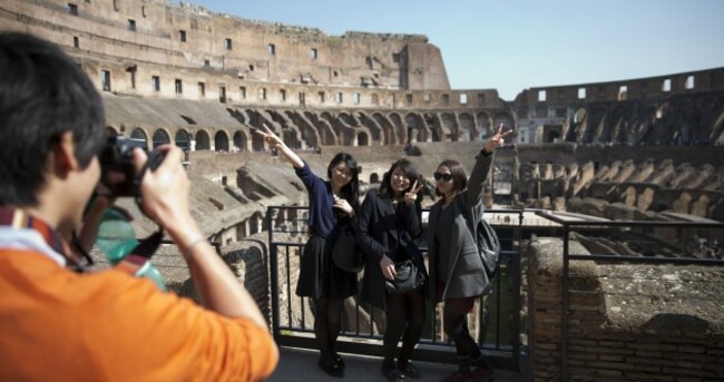 Tourists pose for a happy snap at Rome's Colosseum Associated Press