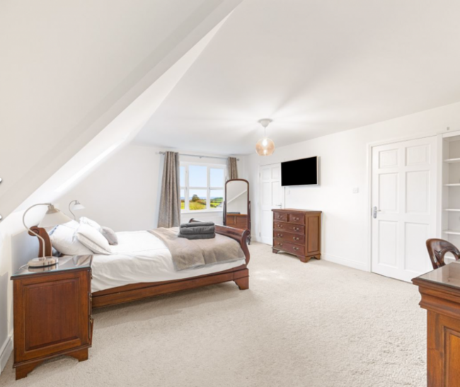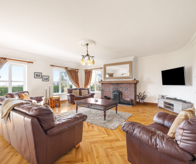 Sea View House is an impressive detached coastal home set on .8 acres of elevated, sea-facing grounds, offering uninterrupted panoramic ocean and countryside views in Wexford. Extending to about 419 m² across a five-bed main home and a superb detached ancillary residence, the property combines scale, privacy and flexibility. The main house extends to about 319 m² and has bright, well-proportioned reception rooms, a bespoke pippy oak kitchen with adjoining dining area and sunroom, home office, ground floor bedroom and four spacious upstairs bedrooms, two of which have en suite bathrooms.