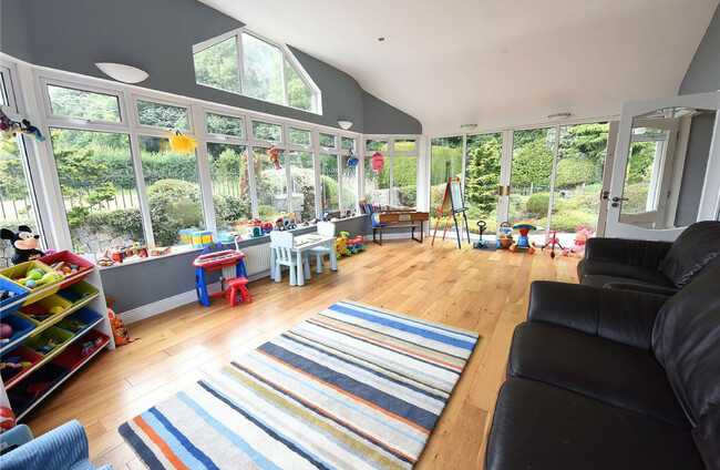 This stylish five-bedroom home contains approximately 2,932 square foot of living space including a spacious sitting room, striking kitchen and dining room, a music room/office, a laundry/gym room and two large, bright en suite bathrooms.