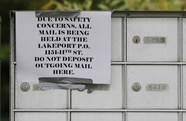 A notice by the US Postal Service warned residents of the Lakeside Heights subdivision that due to the danger posed by the sinking ground, postal workers will no longer deliver mail to the area. (AP Photo/Rich Pedroncelli)