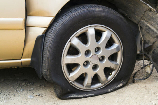 When a blowout occurs, all the air is released immediately from the tyre. Causes of blowouts include under-inflation, damage sustained by striking a kerb or hitting an obstacle on the road. (Or, as I once experienced in Australia, the tarmac being so hot that it caused the tyre to explode – although this may not be a worry here in Ireland.)