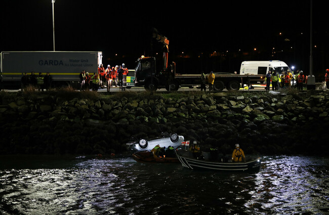 An alarm was raised after the car entered the water at the fish dock in Howth at around 5.15pm.