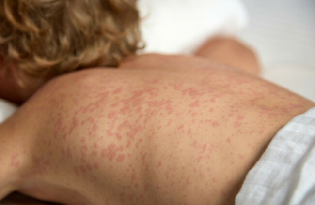 Stock image of someone with a measles rash. Alamy Stock Photo