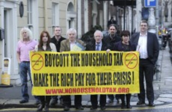 File: TDs (LtoR) front- Clare Daly, Joe Higgins, Seamus Healy, Joan Collins, Mick Wallace, Richard Boyd Barrett, Luke Flanagan and Thomas Pringle at the launch of www.nohouseholdtax.org Sasko Lazarov/Photocall Ireland