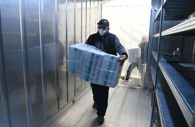 An employee unloads the newly arrived coronavirus vaccines in Budapest Noemi Bruzak via PA Images