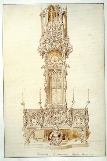 Tabernacle in St. Lawrence’s Church, Nuremberg, by A.W.N. Pugin, 1838, currently on display as part of the Irish Architectural Archive’s ‘Celebrating Pugin’ exhibition in the Department of Arts, Heritage and the Gaeltacht headquarters, New Road, Killarney, Co. Kerry.