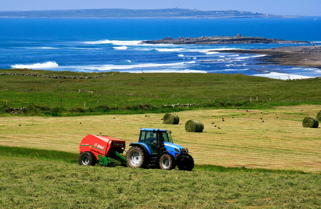 File image of a tractor harvesting hay in Doolin, County Clare Alamy Stock Photo