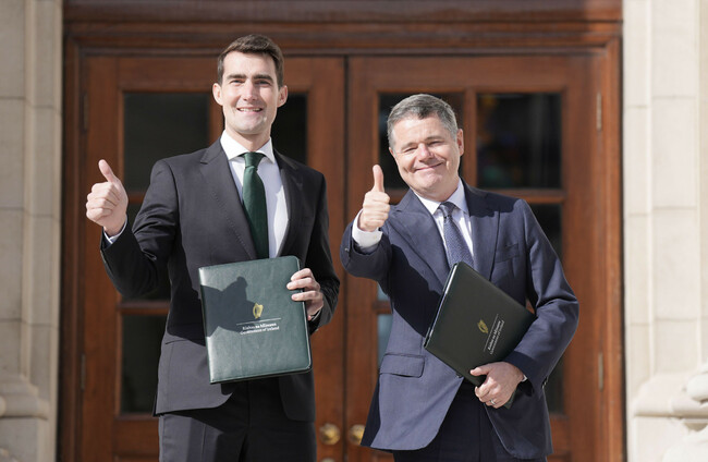 Finance Minister Jack Chambers (left) and Minister for Public Expenditure Paschal Donohoe ahead of a press conference for the 2025 Budget Alamy Stock Photo