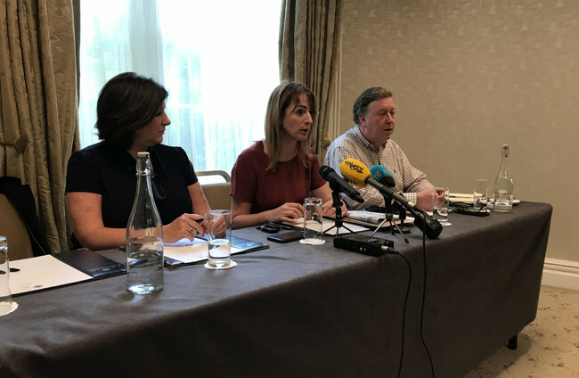 Sharon Lawless of TV3's Adoption Stories, Clare Daly TD and Paul Redmond of the Coalition of Mother and Baby Home Survivors Hayley Halpin via TheJournal.ie