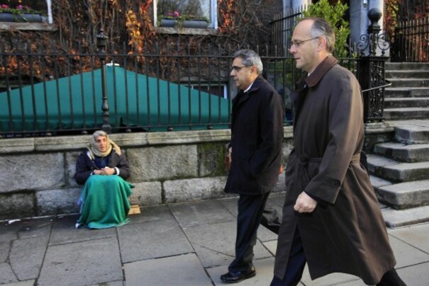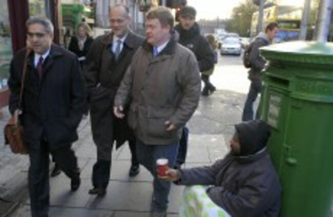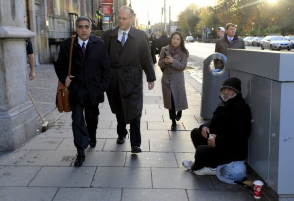 On his way, he passes three beggars at St Stephen’s Green alone – a symbol of the economic hardship still facing Ireland.