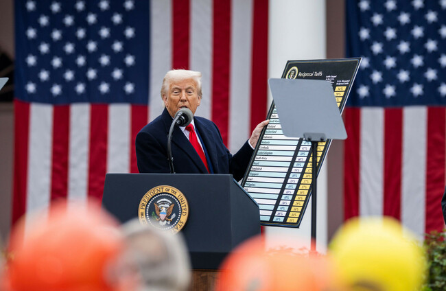 US President Donald Trump signs an Executive Order on the Administration’s tariff plans on 2 April 2025. Alamy Stock Photo