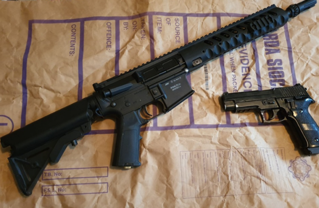 A number of items were seized at both locations including smart phones, laptops, desktop computers, hard drives and two imitation firearms (an imitation pistol and an imitation assault rifle).