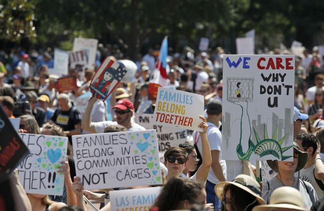 THOUSANDS OF DEMONSTRATORS, baking in the heat and boiling mad against US immigration policy, marched across the country today to protest the separation of families under President Donald Trump’s hardline policy.