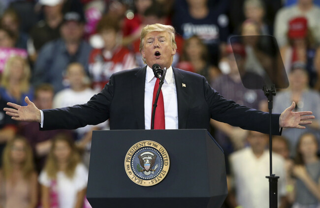US President Donald Trump speaks at a campaign rally yesterday. Jim Mone/AP/Press Association Images