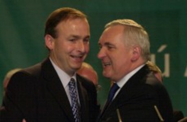 Bertie Ahern embraces Micheal Martin after the former's speech at the Fianna Fáil Árd Fheis in 2003. Leon Farrell/Photocall Ireland