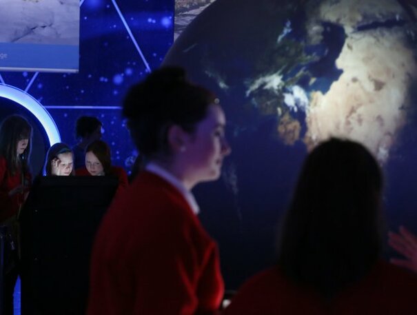 Sixth class students who were in attendance from the Assumption Senior National School from Walkinstown learn about space through a digital interface. (Sam Boal/Photocall Ireland)