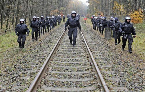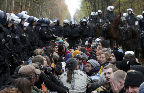Der Spiegel reports that the nuclear waste site has been the source of controversy for 30 years. Today’s clashes follow yesterday’s peaceful protests at the site. Over 30,000 people were expected to protest yesterday.