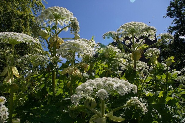 A member of the parsley or carrot family, this plant is native to Asia and can grow up to 6 metres in height. The toxins in the plant's sap can cause human skin to blister and contributes to riverbank erosion. It also pushes out native plants, impacting on the animals that rely on those plants for food. (Image by debs-eye on flickr)