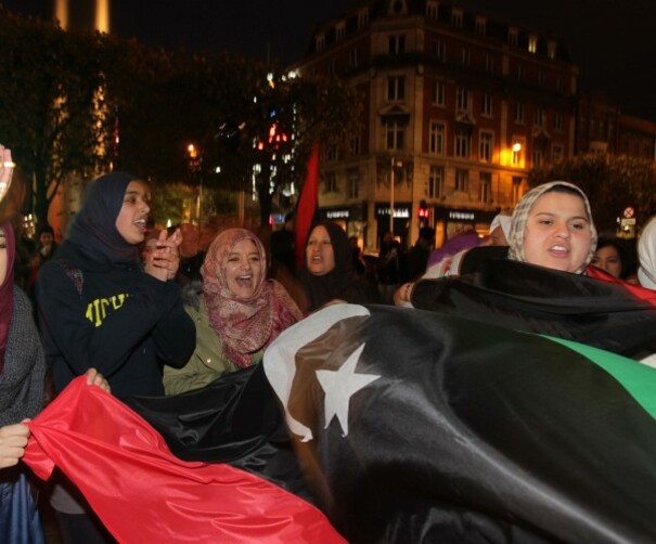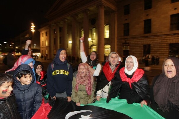 Libyans have celebrated the news, waving flags and balloons and hugging on O’Connell Street tonight: