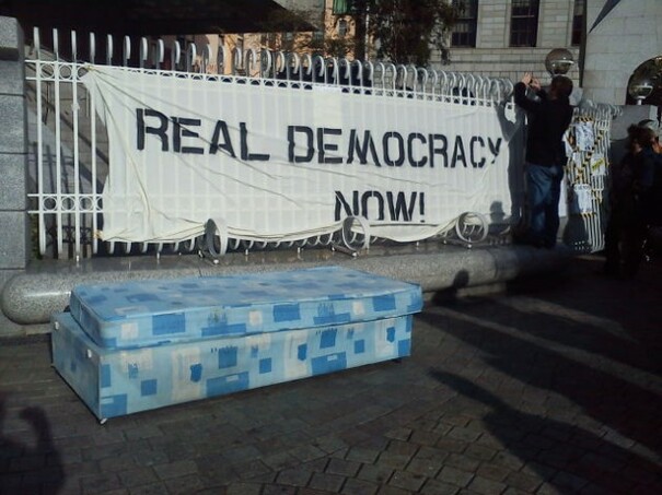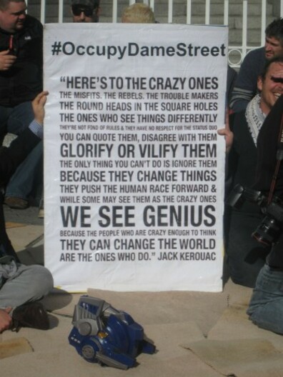 The Dublin event comes after weeks of protests in New York, where a fully-fledged camp has sprung up as primarily young people demonstrate their anger against financial wrongdoing and perceived political cronyism.