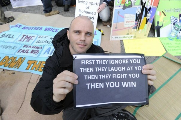 THE INTERNATIONAL ‘OCCUPY Wall Street’ protests arrived in Ireland today, with activists gathering in Dublin to mount a “leaderless resistance” against political and financial elites.