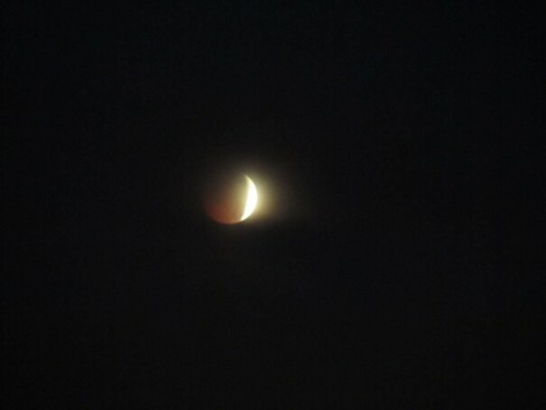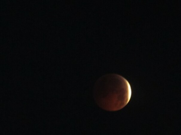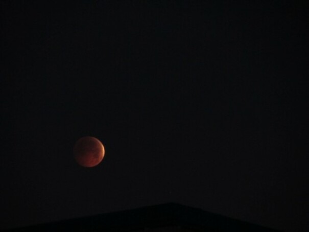 The moon turns a pretty shade of pink during the eclipse. Photographed by Elaine Larkin