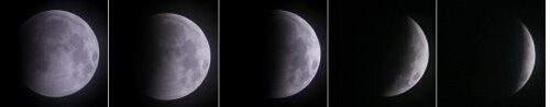 A series of photos taken over an hour long period show the full moon as it is shadowed by the Earth as a total lunar eclipse marks the arrival of the winter solstice Tuesday, December 21, 2010 in Overland Park, Kan. (AP Photo/Charlie Riedel)
