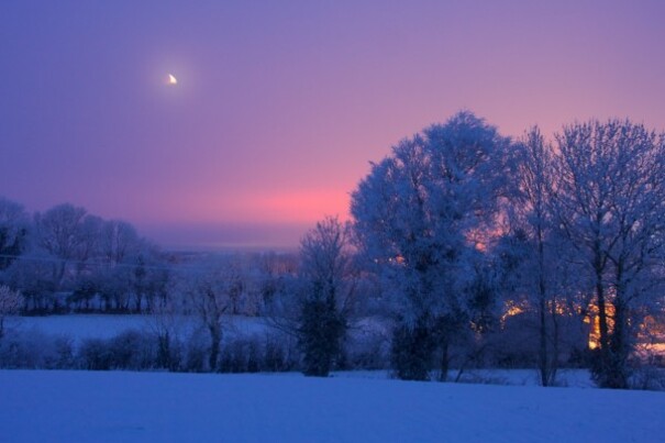 Pink moons suspended over snowy landscapes – what’s not to like?