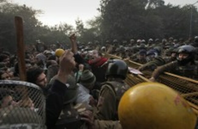 An Indian protester shouts slogans as he is stopped by police during a protest against a recent gang-rape of a young woman in a moving bus in New Delhi, India Altaf Qadri/AP/Press Association Images