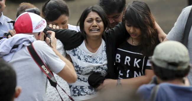 Brintha Sukumaran, centre, sister of Myuran Sukumaran, an Australian on death row, cries as she makes her way to the prison island of Nusakambangan to say her final goodbye to her brother. Tatan Syuflana
