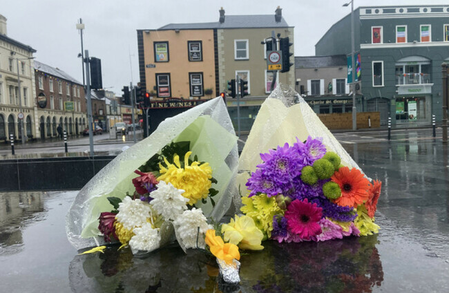 Image dated 17 April, 2022, of flowers at the scene of the fatal assault on Alan Bourke on Parnell Street, Limerick David Raleigh