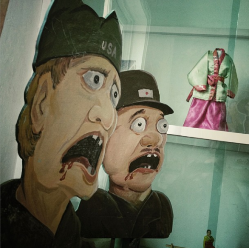 Caricatures of American and Japanese soldiers in a Pyongyang classroom, North Korea. David Guttenfelder/AP via Instagram
