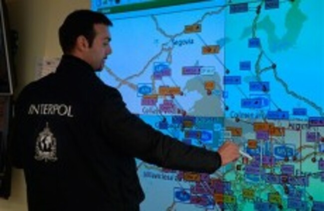 An Interpol officer looks at map where seizures have taken place (AP Photo/Interpol)