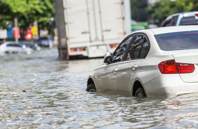 File image of a car stuck in a flood in Thailand. Shutterstock/Piyawat Nandeenopparit