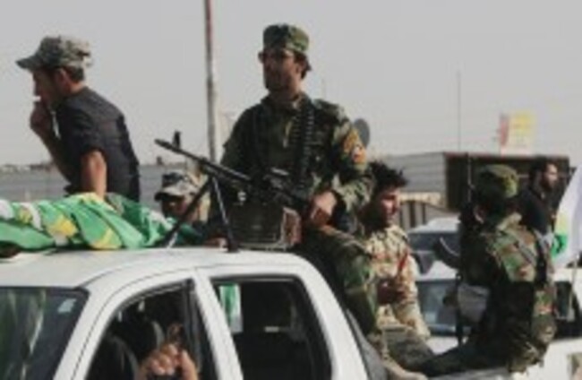 Iraqi Shiite fighters deploy with their weapons in Basra, Iraq's second-largest city, 340 miles (550 kilometers) southeast of Baghdad. AP Photo/Nabil Al-Juran