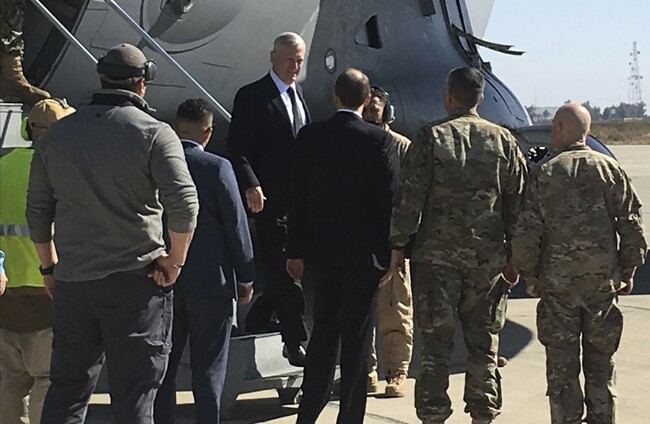 Secretary of Defense Jim Mattis arrives at Baghdad International Airport, AP/Press Association Images