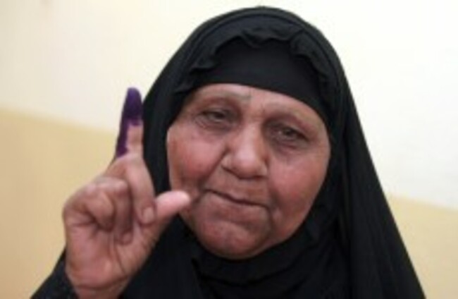 An Iraqi woman displays her ink-stained finger after voting at a polling center during the country's provincial elections in Baghdad, Iraq, today. Karim Kadim/AP/Press Association Images