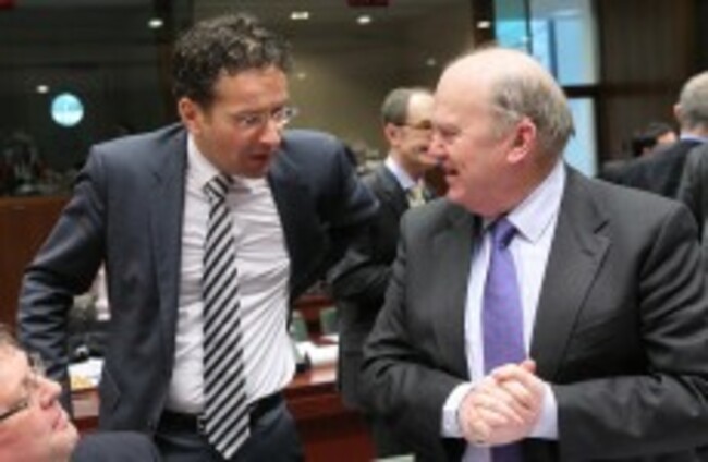 Michael Noonan attends this morning's meeting of EU finance ministers alongside his Dutch counterpart, and Eurogroup president, Jeroen Dijsselbloem. Council of the European Union
