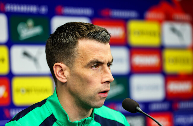 Seamus Coleman speaks to the media in Prague. Ryan Byrne/INPHO