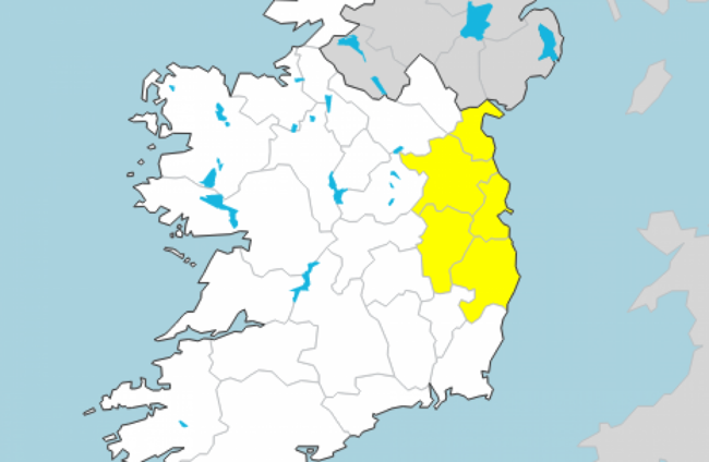The warning is in place for Dublin, Meath, Wicklow, Kildare and Louth.