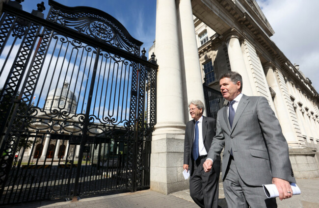 European Commissioner for the Economy Paolo Gentiloni and Finance Minister Paschal Donohoe in Dublin today. Sam Boal