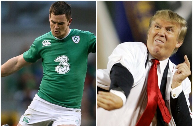 Ireland rugby star Johnny Sexton (left) and Republican presidential nominee (and amateur baseball pitcher) Donald Trump PA