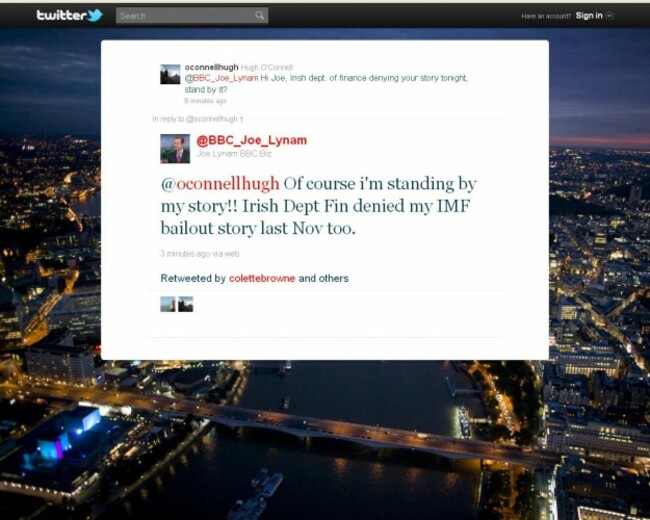 The department of finance has denied a BBC report that Ireland is to get a bailout interest rate reduction. But the reporter who broke the story stands by it, pointing out that the government denied his original bailout deal story in November 2010.